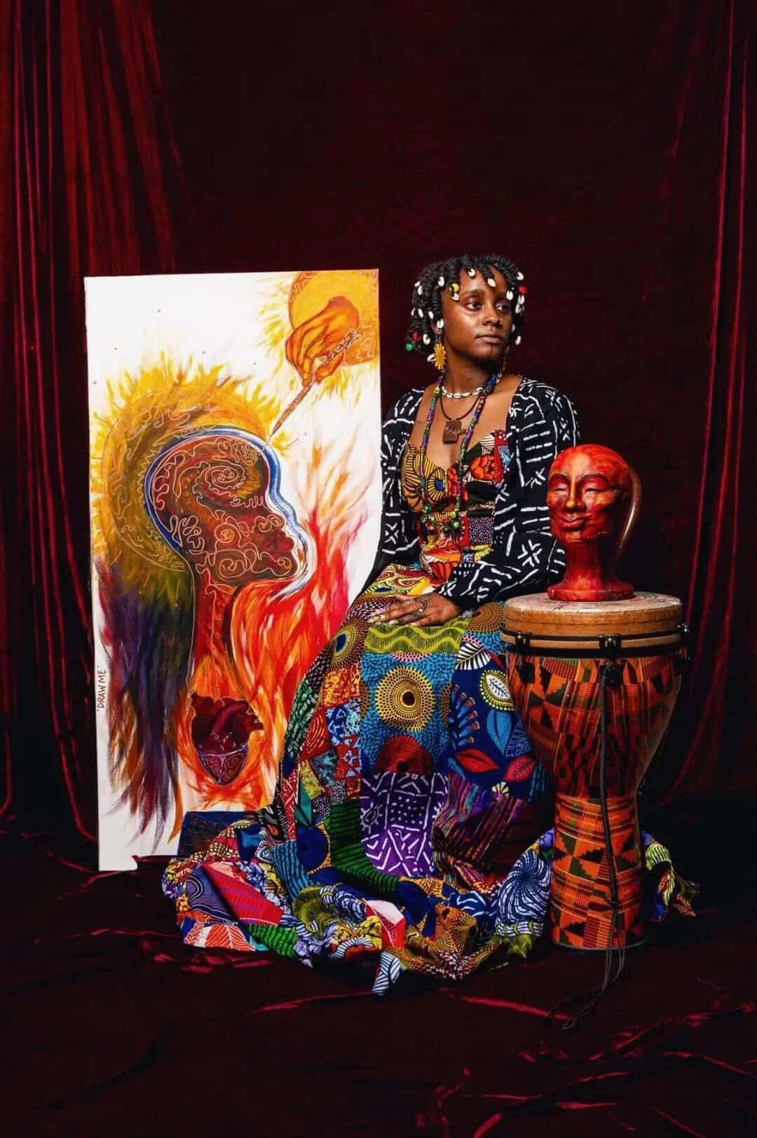 Her 2026 solo exhibition and series launch, Remembering Your Royalty, presented by Azura Studios, represents a multi-year journey across countries, residencies, and intimate self-study. The series weaves together fine art, narrative, and cultural preservation, serving as both an homage to ancestry and a contemporary exploration of selfhood. See the exhibit at the Art Noire Gallery on display through April 7.
